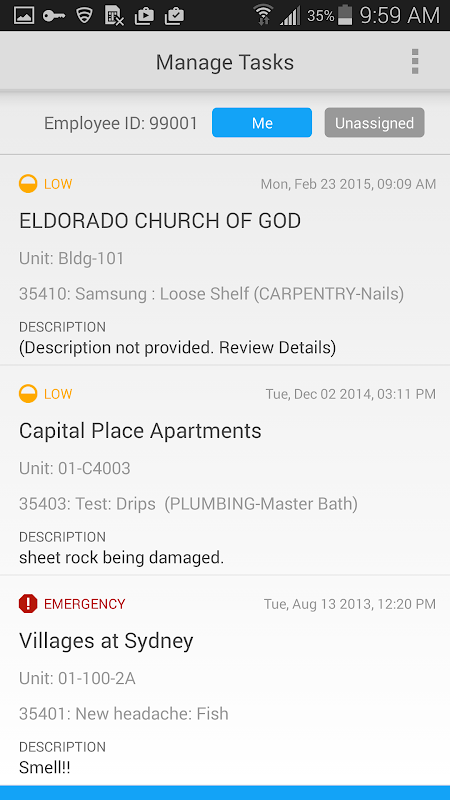 c.Manage: Allows an employee/technician to whom a work order task is assigned to review details of the task as well as record their time spent on the task and/or close the task.