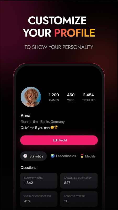 QuizApp è molto più di un semplice quiz: è la tua piattaforma per emozionanti duelli, connetterti con gli amici ed espandere continuamente le tue conoscenze. Scarica subito QuizApp e intraprendi un viaggio pieno di duelli, curiosità, quiz, giochi multiplayer e conoscenza sconfinata - e condividi il divertimento con i tuoi amici!