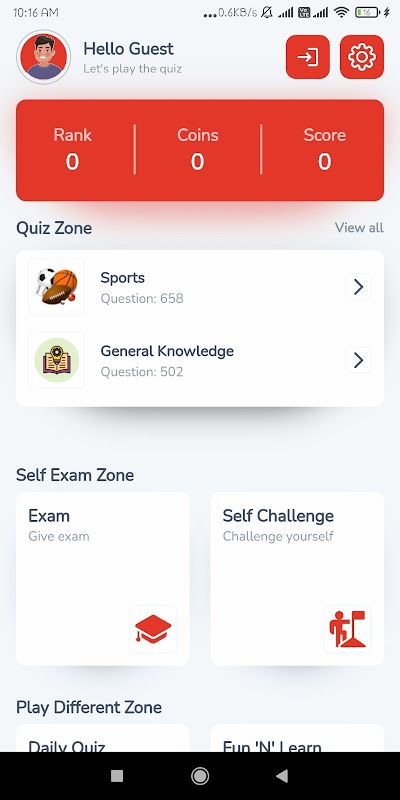 Con QuizBox, apprendimento e divertimento vanno di pari passo. Esplora zone diverse, mettiti alla prova con diversi quiz e intraprendi un viaggio di scoperta e divertimento. Unisciti a noi oggi e diventa parte dell'esperienza di quiz definitiva!