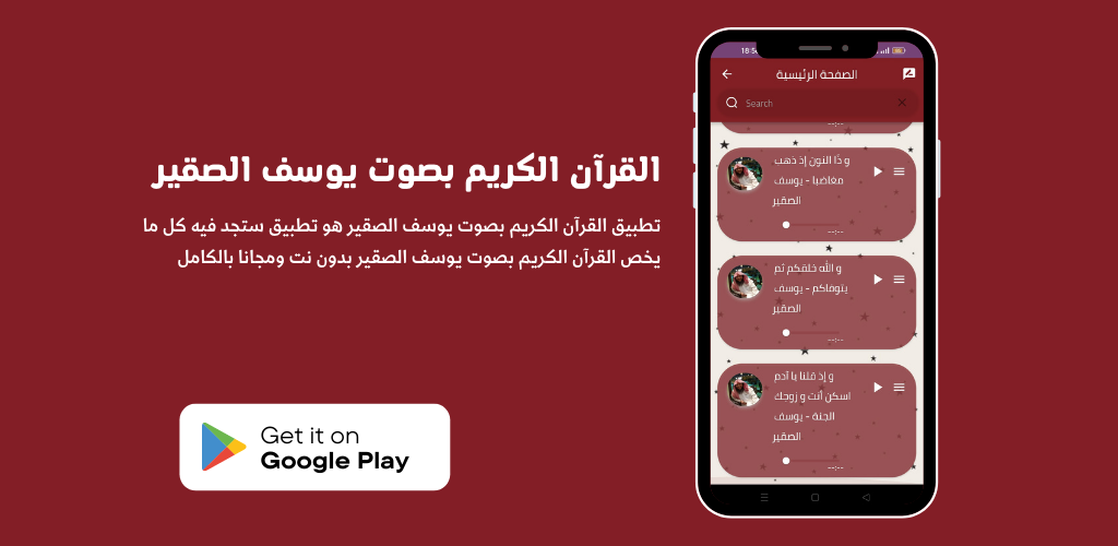يتيح لكم تطبيق تلاوة القران الكريم بصوت الشيخ يوسف الصقير سماع تلاوة القران بصوت الشيخ يوسف الصقير ويمكنك تنزيل القران الكريم إلى هاتفك المحمول بسهولة ويسر من خلال تطبيق واحد يضم قران كريم بصوت الشيخ يوسف الصقير