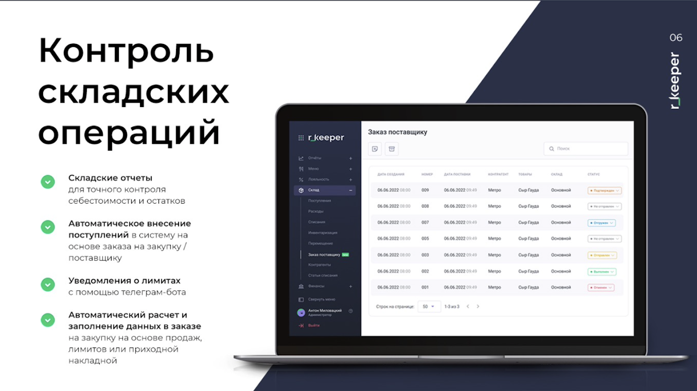 La nuova versione di r_keeper Lite ha un modulo di contabilità di magazzino esteso.