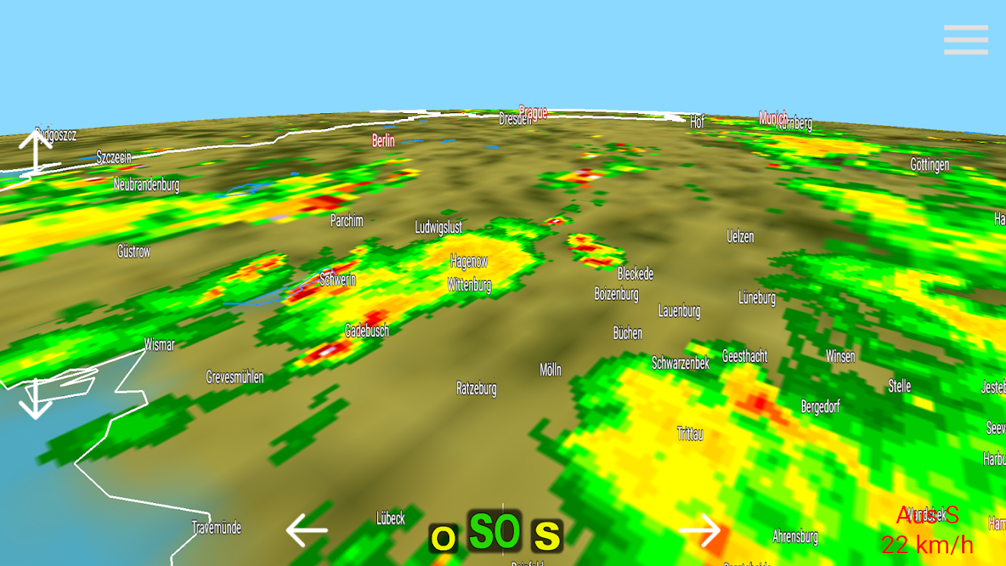 Radarsicht ti mostra il radar meteorologico in una vista 3D da dove ti trovi. Guarda i dati meteorologici da terra o dal cielo. Radarsicht calcola la direzione e la velocità del tempo vicino alla tua posizione. Una guida sullo schermo ti dice come si sta muovendo la pioggia e quanto tempo impiegherà per raggiungerti.