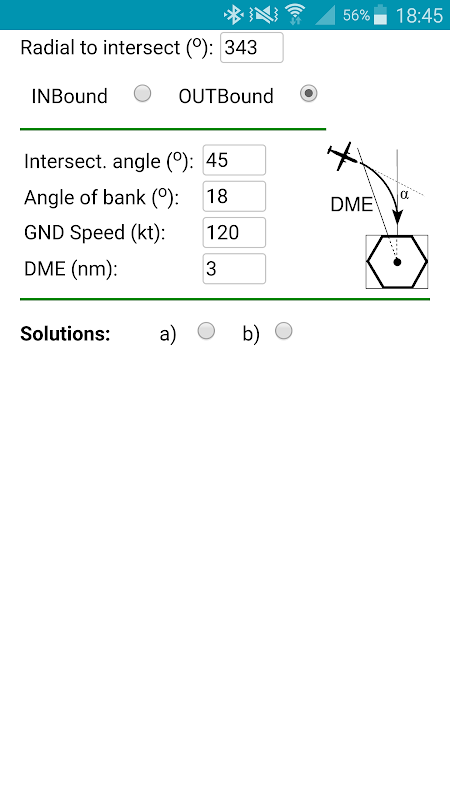 Determines the courses and the turn anticipation required to intersect a VOR radial at a given DME from the station. It accounts for the bank angle and the ground speed.