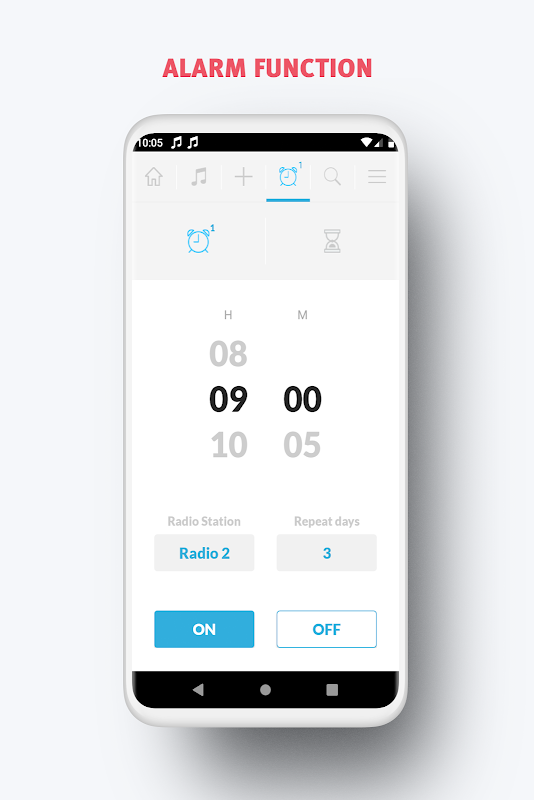 ☛ Funzione sveglia/sveglia e timer di spegnimento per programmare la chiusura dell'applicazione