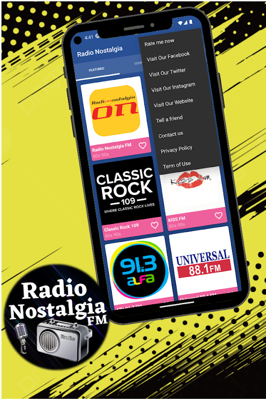 "Radio Nostalgia" è un'applicazione di Radio su Internet, che offre il meglio della Musica degli anni '80 e '90