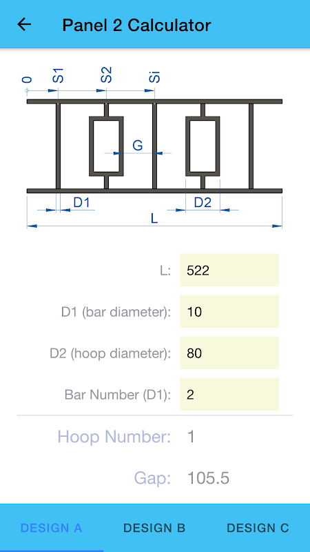 Panel Calculator: calcola il divario tra le barre verticali e i punti di inizio per le barre verticali.