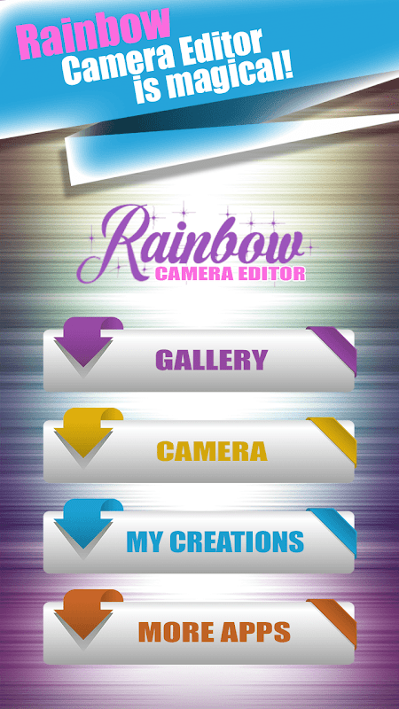 Un editor arcobaleno molto colorato con effetti fotografici artistici e fughe di luce! Puoi, rapidamente e facilmente, creare filtri super-pellicola e il colore della fotocamera! Dimentica la sfocatura della fotocamera, installa un editor fotografico girly con colori arcobaleno! Assicurati solo di divertirti mentre aggiungi l'arcobaleno pastello sulla foto!