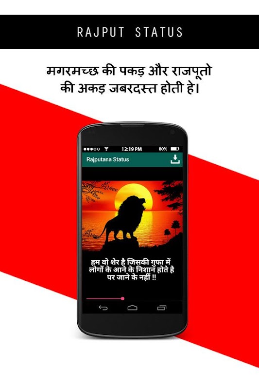 Rajput Status is an innovative application allows you to create Rajput status images with Rajput quotes!