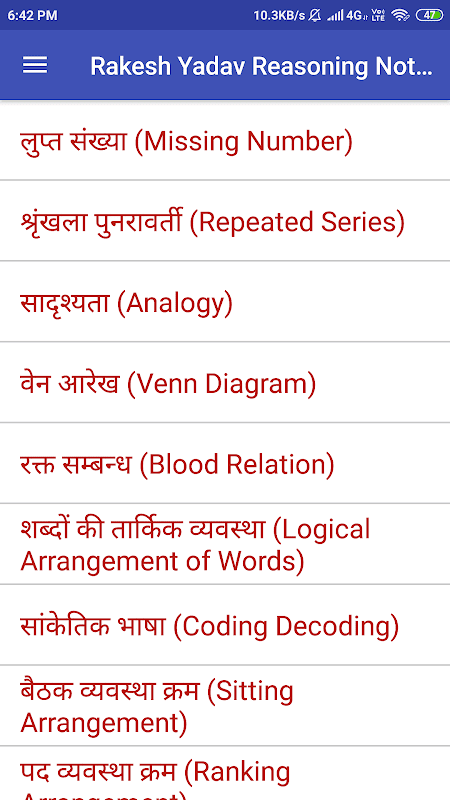 Rakesh Yadav Class Notes of Reasoning in Hindi Offline Android App