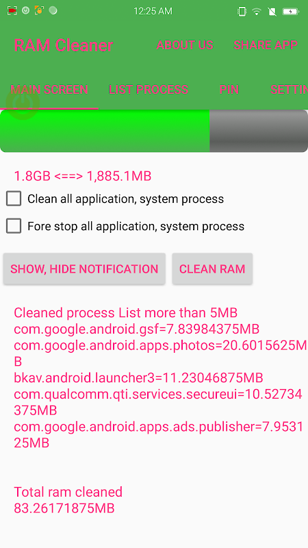 Ram Cleaner è l'uso dell'applicazione per la RAM chiara.