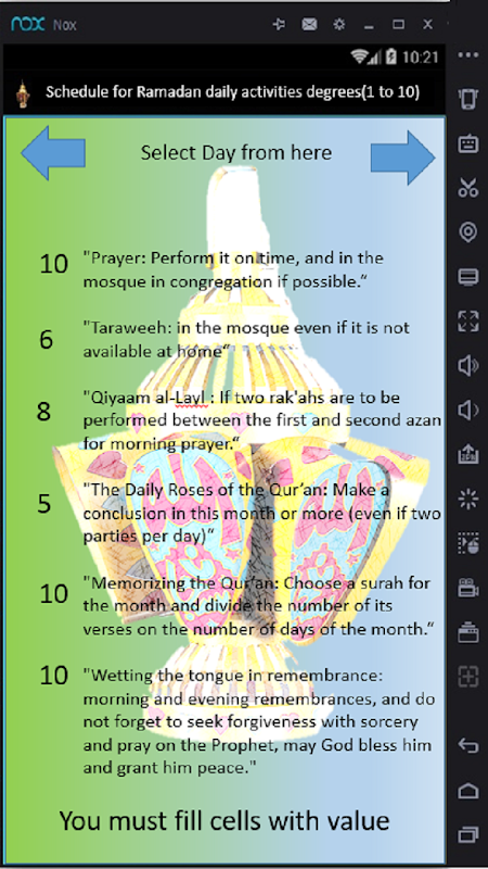 Questo strumento è il programma per le attività quotidiane del Ramadan con visualizzazione grafico