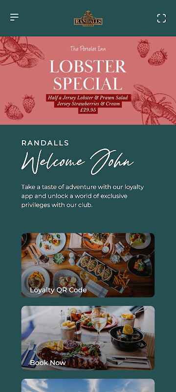 Presentazione dell'app Randalls: la tua destinazione unica per scoprire i nostri pub e ristoranti, esplorare i menu, prenotare un tavolo e guadagnare punti fedeltà in pochi tocchi.