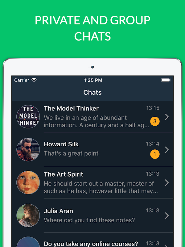 - DISCOVER and search chats for any topic you're passionate about