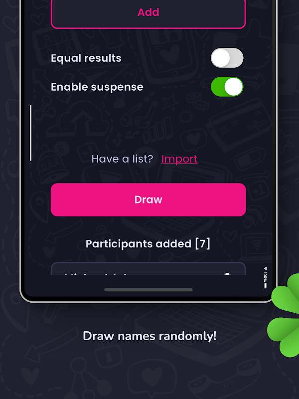 📢 Le estrazioni effettuate all'interno dell'app si riferiscono esclusivamente alla generazione casuale di numeri, nomi e squadre, senza alcun collegamento a concorsi, promozioni o distribuzione di denaro o beni.