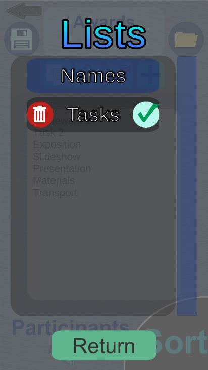 - Distribuzione casuale dell'elenco dei partecipanti nell'elenco dei premi.