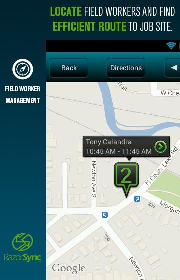 RazorSync collega vostro ufficio e operatori sul campo, dando maggiore controllo sulle gestione dei clienti, dei flussi di cassa e gli impiegati nel settore. Tutti i dati sono memorizzati nel cloud, in modo che sia sempre disponibile da ovunque ci si trovi.