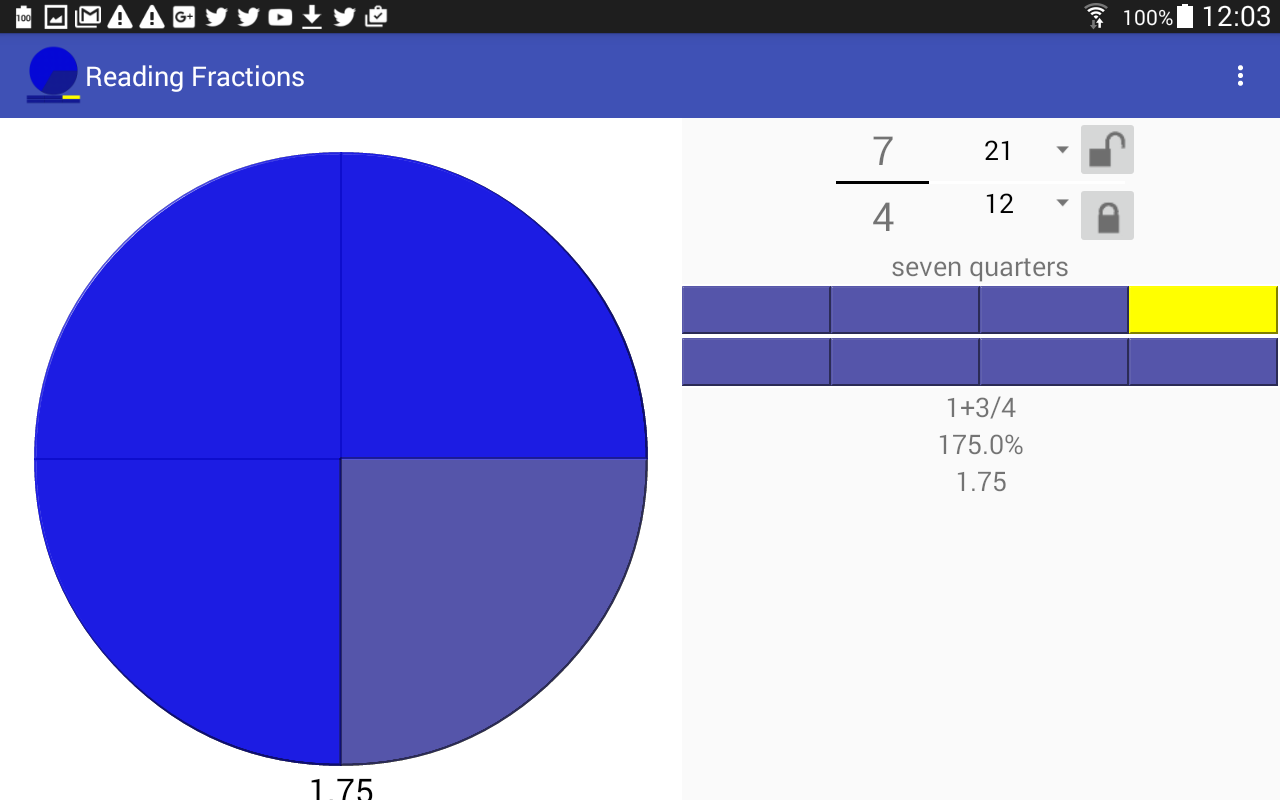 Inoltre frazioni sono mostrati in parole scritte, frazioni miste (se necessario) come percentuale e come numero decimale con punti.