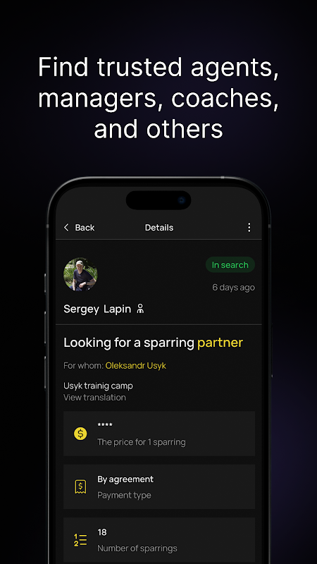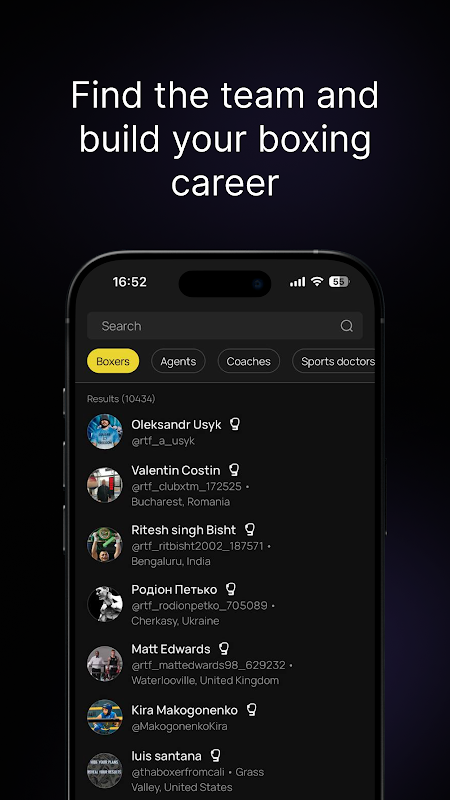 Ready for Boxing è uno strumento potente per tutti coloro che lavorano nel pugilato: pugili, allenatori, manager, medici, cutmen, arbitri, federazioni pugilistiche e altro ancora. Ti permette di trovare le persone giuste per il tuo camp, di essere ingaggiato per incontri ed eventi o di creare il tuo team di supporto. È il luogo in cui gli specialisti del pugilato si incontrano e collaborano.