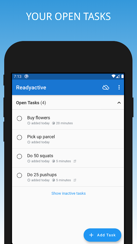 Readyactive offre tutto ciò di cui hai bisogno per gestire le tue attività quotidiane . È facile da usare e include tre modalità di motivazione che ti aiutano a portare a termine le tue attività.