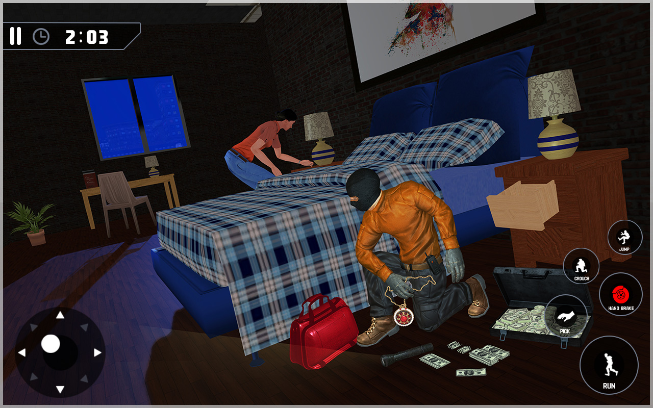 Play like a professional thief, keep observing the surroundings, Make a deep analysis of the house for making the plan for recovering your robbed items.