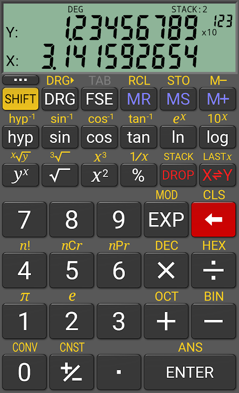 RealCalc è progettato per apparire e funzionare esattamente come una vera calcolatrice portatile. Ha tutte le funzioni scientifiche standard più storia, memorie, conversioni di unità e costanti. Puoi scegliere tra diversi stili e formati di visualizzazione. Supporta anche calcoli binari, ottali ed esadecimali e ha una modalità RPN opzionale. RealCalc è facile da usare, ma ha una guida completa inclusa nell'app.