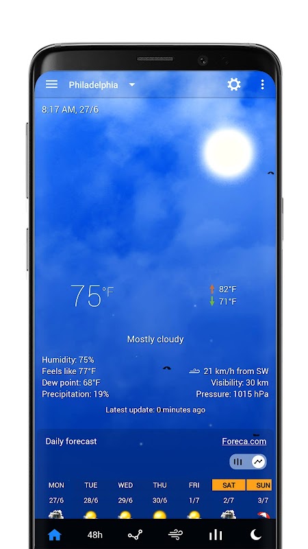 Non c'è più bisogno di guardare fuori dalla finestra: basta avviare l'app e vedere come appare il tempo all'esterno. ☀️ La nostra app meteo utilizzerà una grafica appropriata per mostrare le condizioni meteorologiche attuali il più vicino possibile alla realtà. 🌩️