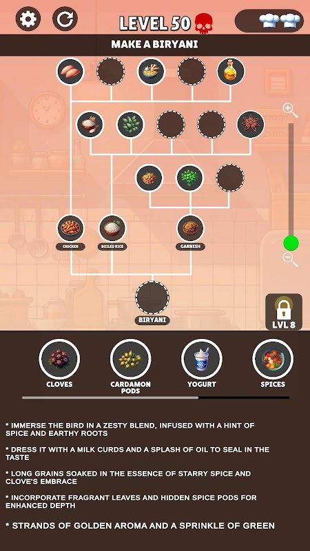 Scopri il mondo culinario con Recipe Tree, un delizioso puzzle game che mette alla prova la tua memoria e creatività! Combina ingredienti, sblocca ricette segrete e crea il tuo libro di cucina virtuale. Sfida la tua mente con ogni nuova ricetta e guarda crescere il tuo impero in cucina. Recipe Tree coinvolgerà il tuo cervello, affinerà la tua concentrazione e farà emergere lo chef che è in te!