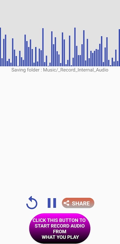 15. Dopo aver riprodotto il supporto con audio interno (riproduzione di un lettore video o riproduzione di video online) e quando l'audio è stato registrato con successo, verranno visualizzati il pulsante di riproduzione e il pulsante di condivisione. In questa situazione puoi fare clic sul pulsante Condividi per condividere il file audio registrato con i tuoi amici tramite qualsiasi social media installato nel dispositivo. Nel caso in cui non hai ancora riprodotto alcun supporto, il pulsante di condivisione non verrà visualizzato