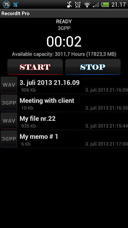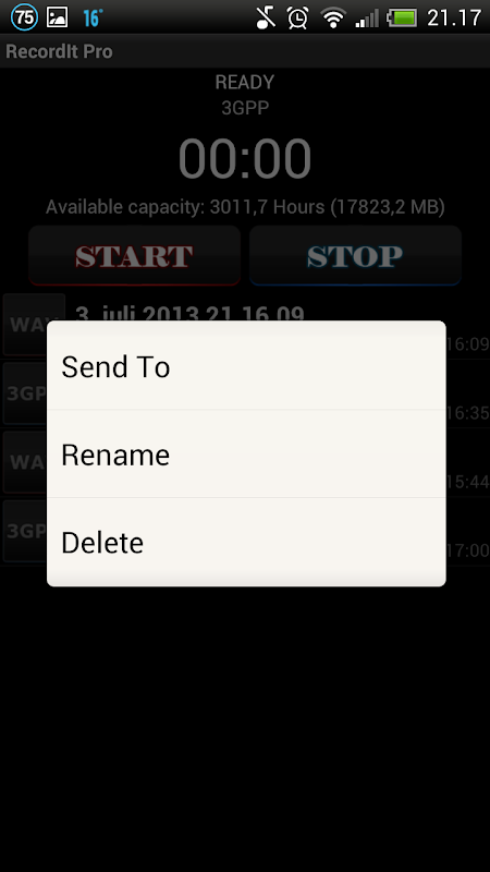 Nelle impostazioni è possibile scegliere se registrare in 3GPP per risparmiare spazio di archiviazione, o wav per l'alta qualità. Qui è anche possibile scegliere quale frequenza di campionamento che si desidera per la registrazione.