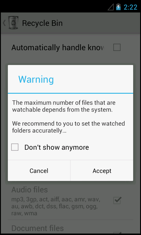 Cestino per Android che funziona con la maggior parte dei file explorer di terze parti