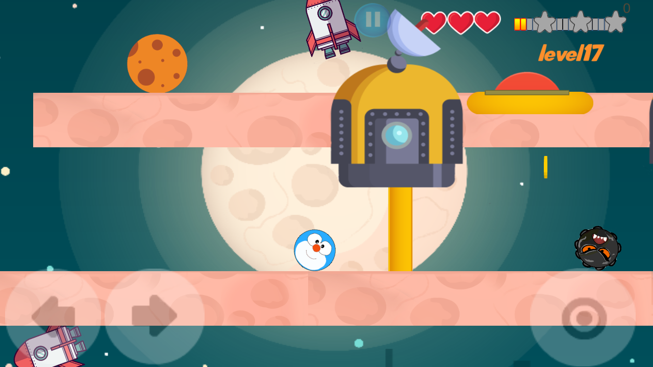 Red Ball Roll 3 one of best arcade game you have to avoid from unique obstacles, take revenge kill the monster and become winner of the game. It is very hard to save the tiny red ball in this game but make best strategy to win incredibly in this addictive and amazing missions. Defeat the bosses in the boss fighting levels with great fun. Fly in to the space explore the super action special levels. Eat the fruit like banana to get some energy to move forward in green jungle full of adventures. Red ball is hungry and angry. He is the real super hero. He can swim in sea, fly, and slide, swing like a jet-force in deep and endless loopy jungle. Try to jump on wooden box to hit alien monster to finish the level as soon as possible. There are some bombs placed in forest void form these bombs. Become master to rescue the planet from the evil monster.
