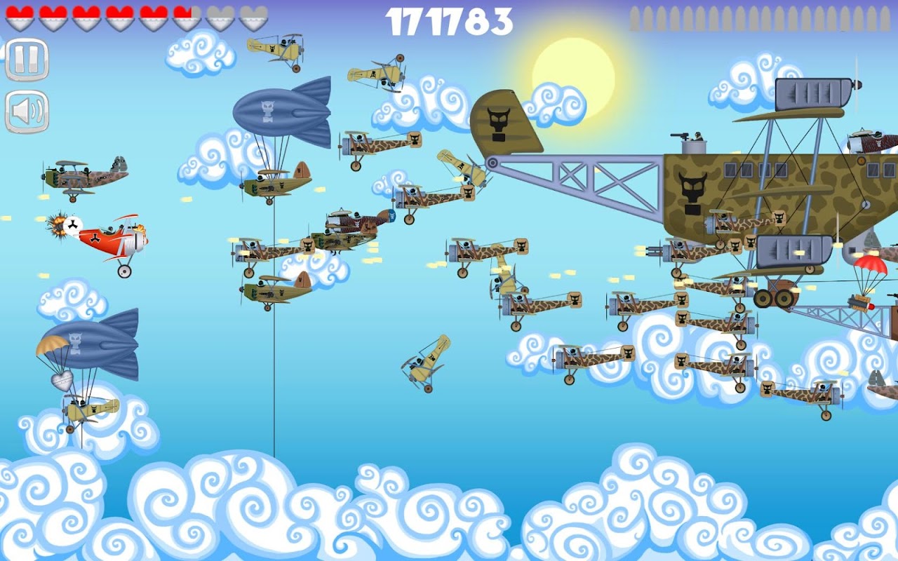 Vi levate in piedi contro le orde nemiche di combattenti, biplani e bombardieri! Aerostati, dirigibili e cannoni antiaerei cercheranno di fermarvi.
