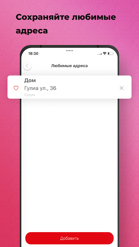 Ordina Red Taxi Abkhazia nelle città di Gagra, Pitsunda, Gudauta, New Athos, Sukhum, Ochamchira, Tkuarchal, Gal tramite l'applicazione. È 3 volte più veloce che al telefono! Ci sono un paio di secondi tra il desiderio di arrivare nel posto giusto e la ricerca di un'auto.