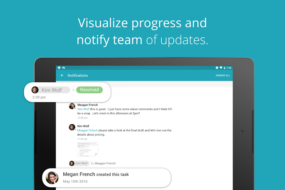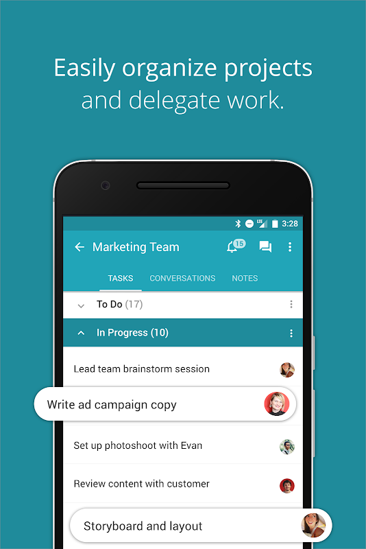 - Crea, assegna e aggiorna le attività in qualsiasi momento, da qualsiasi luogo. Accedi rapidamente ai progetti importanti, agli incarichi ed ai file. Condividi file tramite l'integrazione con i servizi Google Drive, Dropbox e Box