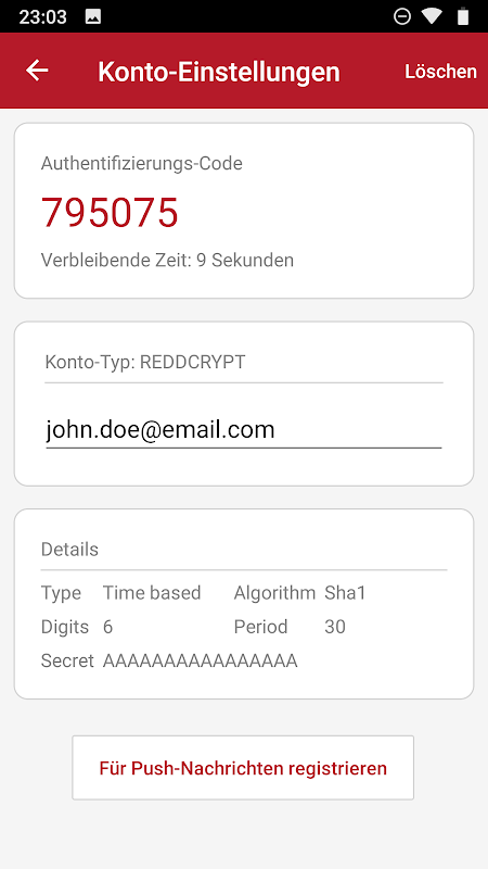 Der REDDOXX-Authentifikator generiert Sicherheitscodes, die sie dabei unterstützen können, Ihr REDDOXX-Konto sicher zu gestalten. Sie können ihr REDDOXX-Konto hinzufügen, indem Sie den Barcode scannen oder indem Sie manuell den geheimen Schlüssel eingeben.