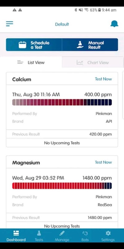 Non solo puoi monitorare il tuo acquario, puoi anche eseguire e impostare programmi di test preferiti e lasciare che ReefBot faccia il resto del lavoro per te da remoto!