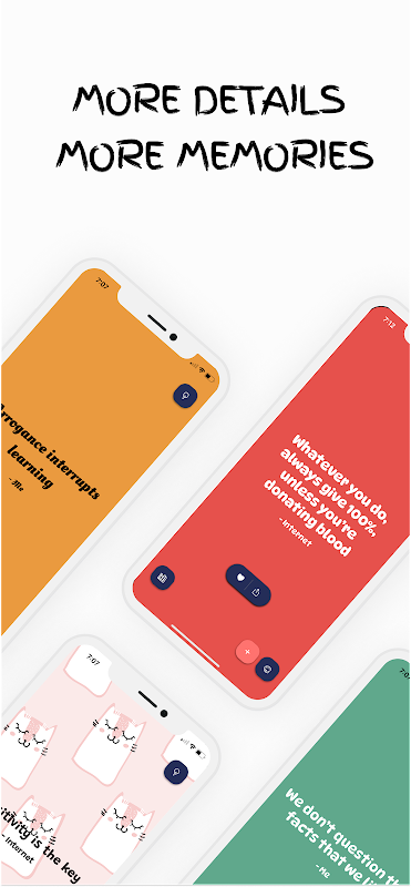Non tutte le citazioni ti stanno bene. Ogni persona ha appena guadagnato lezioni che non vorresti mai dimenticare. Scrivi la tua riflessione sull'app e ricorda a te stesso durante la giornata. Non ripetere mai gli errori e un passo avanti verso la produttività successiva.