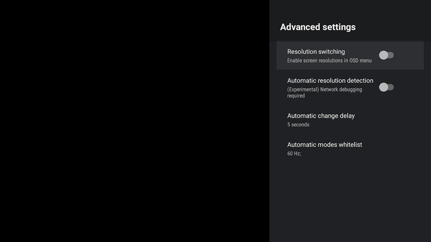 Modalità di visualizzazione automatica corrispondente alla frequenza dei fotogrammi video per Nvidia Shield TV.