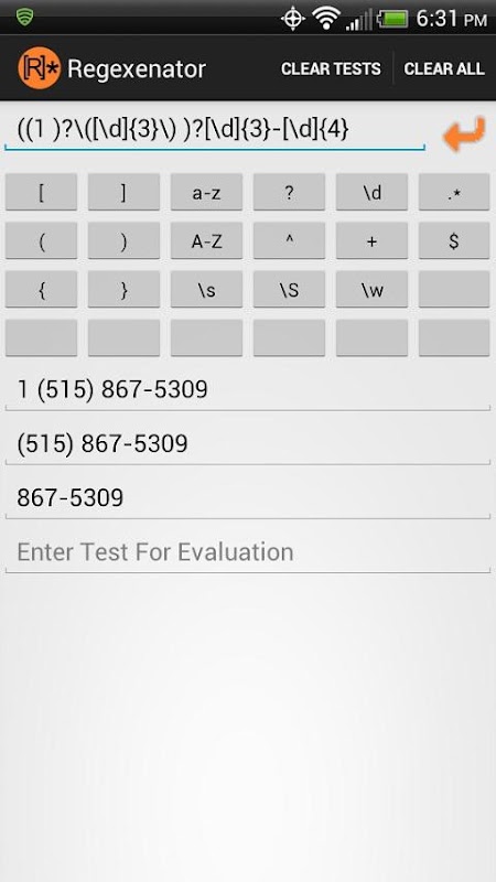 - Built-in funzione di condivisione - Dopo aver perfezionato l'espressione regolare, è possibile utilizzare questa funzionalità per la posta elettronica il re al vostro indirizzo di lavoro, il testo di un collega, copiare negli appunti, ecc