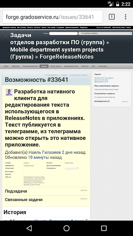 Inside the company constructed a system that builds a list of changes from the headers of the Forge tasks. And this app allows you to edit these headers, which are used in the description of the changes to the program.