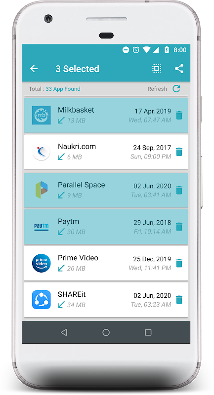 Questa applicazione esegue la scansione dell'intero telefono alla ricerca di tutte le app scaricate che sono attualmente presenti nel telefono e che è possibile disinstallare dal telefono. Questo mostrerà solo le app scaricate.