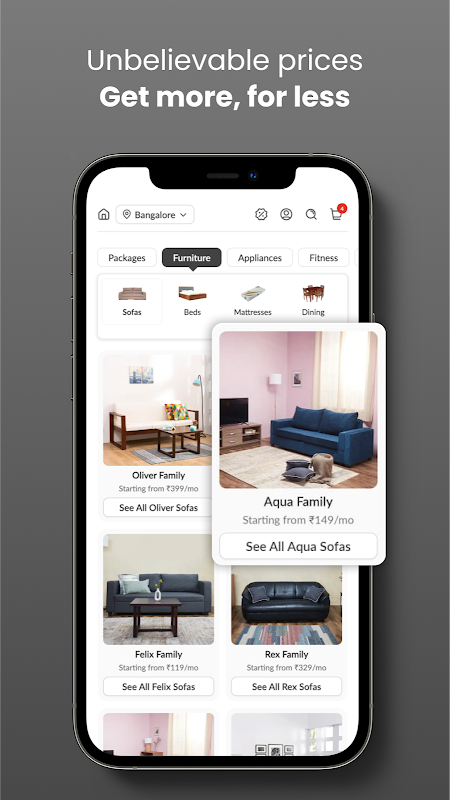 Il noleggio di mobili parte da soli ₹ 79 al mese
