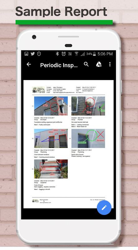 Generare e inviare report in formato PDF personalizzati di foto con testuali e grafiche annotazioni tutti sul telefono