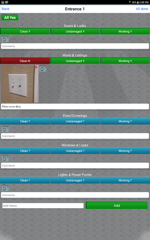 Questa app ti consentirà di scattare foto, digitare commenti e contrassegnare le caselle di controllo delle condizioni. Usa la dettatura vocale per commenti più rapidi e mantieni tutte le foto organizzate con l'elemento di ciascuna area della stanza. Al termine è possibile visualizzare e scaricare il report. Una copia del rapporto verrà inviata automaticamente al gestore di proprietà.