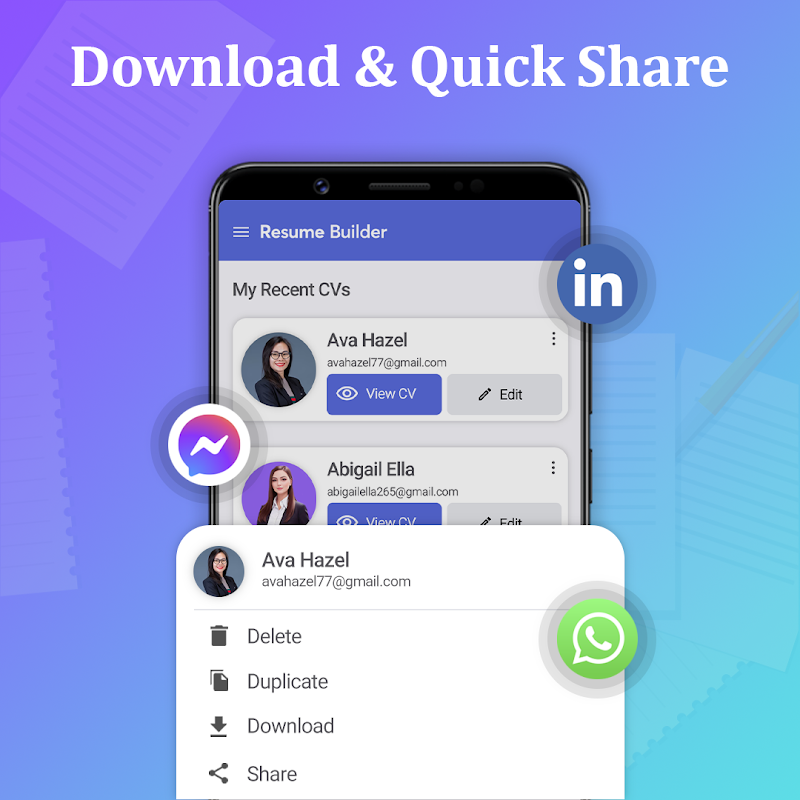 Il curriculum è la prima cosa da fare durante la ricerca di lavoro. La scrittura del CV è fondamentale per questo scopo. L'app per la scrittura di CV ti aiuterà a generare, gestire e condividere il tuo CV rapidamente.