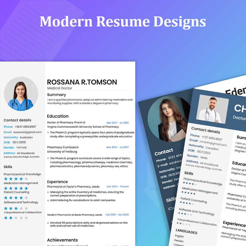 CV Creator ha creato l'app per la creazione di CV con modelli specializzati per la creazione di CV e modelli di CV basati sulla ricerca e sugli stili moderni di diverse aziende in tutto il mondo. Questo migliorerà il tuo Curriculum Vitae in PDF concentrandosi su ciò che i responsabili delle assunzioni a livello globale si aspettano.