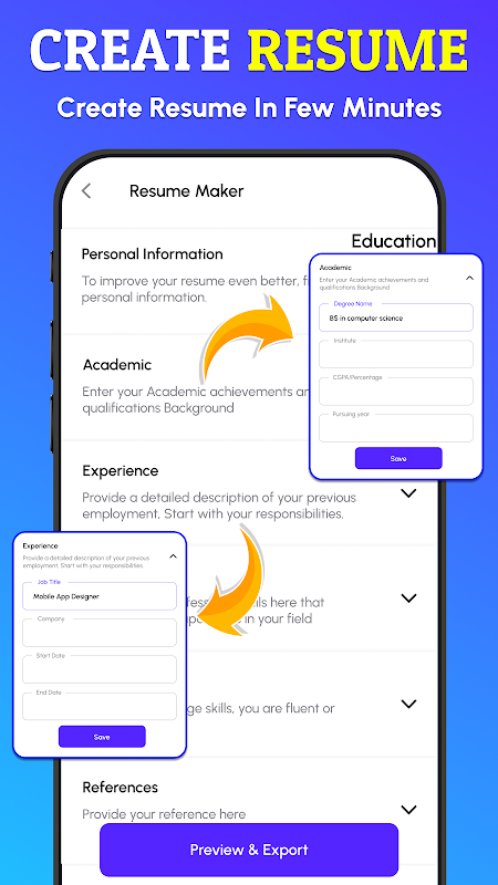 Cerchi un'app gratuita per la creazione di curriculum per creare un curriculum e un CV professionali in pochi minuti? La nostra app CV Maker & Resume Builder offre oltre 24 modelli di curriculum moderni insieme a potenti strumenti PDF per aiutarti a creare, modificare e gestire i documenti delle tue domande di lavoro in modo efficiente.