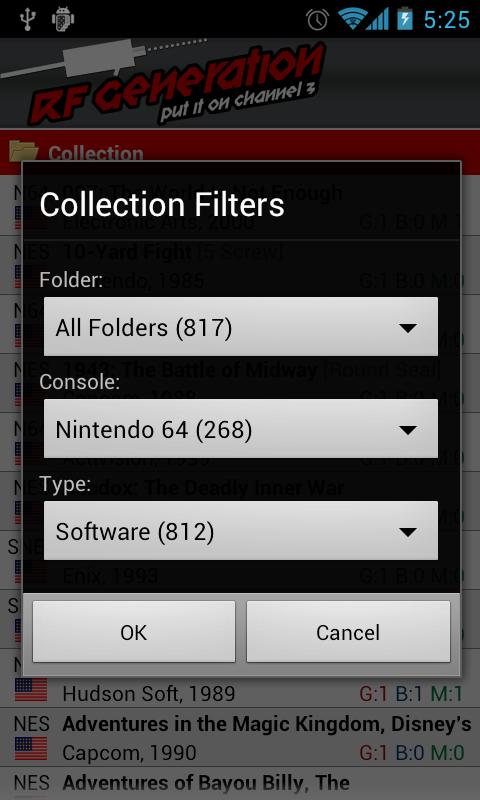 Access and edit your RF Generation video game collection on the go, or search their massive database of game and hardware information. Want to get your collection set up quickly? Use the bar code scanner to add games to your collection without having to type them all in!