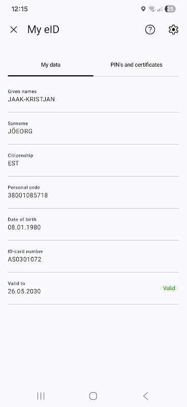 Con l'applicazione RIA DigiDoc, è possibile verificare le informazioni e la validità dei certificati delle carte d'identità e modificare i codici PIN e PUK. Il menu "Le mie carte d'identità elettroniche" visualizza i dati del titolare della carta d'identità e le informazioni sulla validità della carta. Queste informazioni sono visibili solo quando la carta d'identità è collegata.