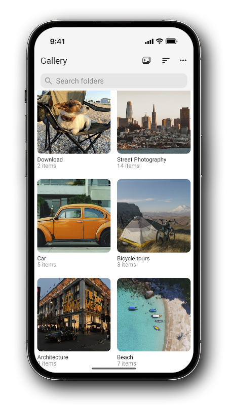 1. Interfaccia intuitiva e facile da usare con ampie opzioni di personalizzazione. Puoi visualizzare i contenuti per cartella o tutti i file multimediali sul tuo dispositivo raggruppandoli rapidamente per data, tipo o estensione.